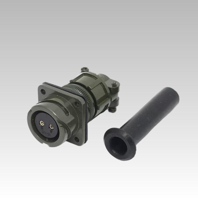Flange-mounted wall receptacle with bayonet coupling, securely fixed on the equipment panel, ideal for external connections.