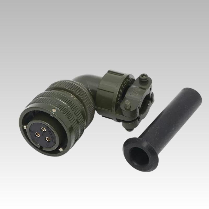 90° angled plug with bayonet coupling, ideal for limited-space environments such as cabinets or vehicle systems.